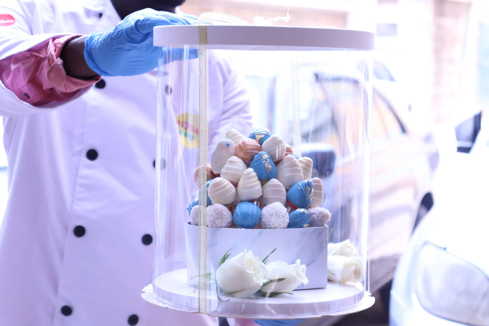 🍓 Includes: 50 chocolate-dipped strawberries, 10 chocolate-coated cake pops, and clear-lid presentation box.